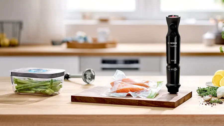 Keep your food fresh for longer! Attach the vacuum pump to your hand blender with a simple click and preserve fresh food, leftovers or snacks in vacuum containers and zipper bags. Enjoy the taste of fresh food every day.